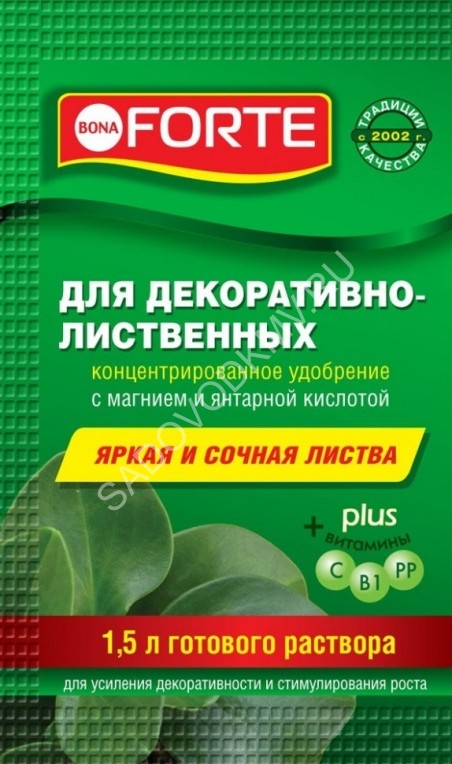 Состав: N – 4%; P – 5%; K – 6%; S – 0,1%; Fe - 0,06%; Mn - 0.06%; B – 0,006%; Cu – 0.006%; Zn – 0.006%; Mo - 0.012%; Co – 0.0006%.